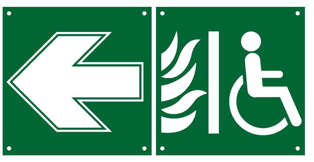 | 660 029 | Étiquette PMR vers sortie aménagée et flèche PMR : Personne à Mobilité Réduite |  | |